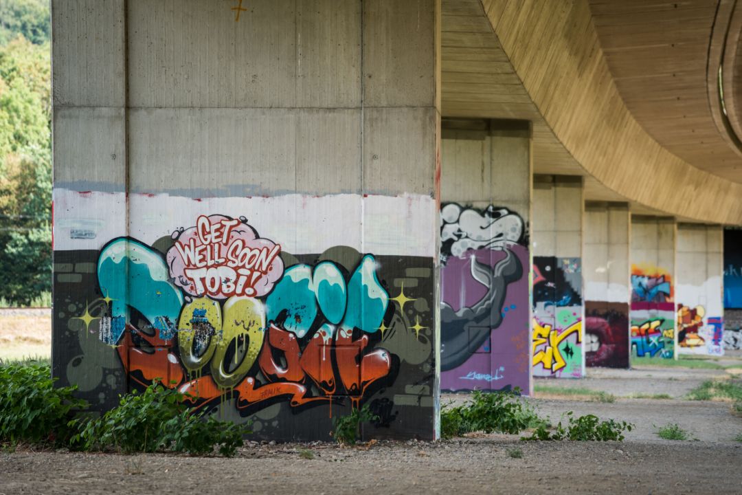 Fotospaziergang mit dem Fotografen Martin Schulte-Kellinghaus an der "Open Bridge" im Grütt-Park in Lörrach. An den Pfeilern der Autobahnbrücke entstehen fortlaufend neue Graffitis, die im Workshop fotografisch erkundet werden. Im Mittelpunkt stehen Fragen der Bildgestaltung, Perspektive und Technik, um die Kunstwerke wirkungsvoll in Szene zu setzen. Zugleich bietet sich Gelegenheit, die eigene Kamera praxisnah besser kennenzulernen. Eigene Kameras (mit Bedienungsanleitung) sind mitzubringen; grundsätzlich sind alle Kameratypen geeignet, wobei sich erweiterte technische Möglichkeiten insbesondere mit einer Spiegelreflexkamera nutzen lassen.
